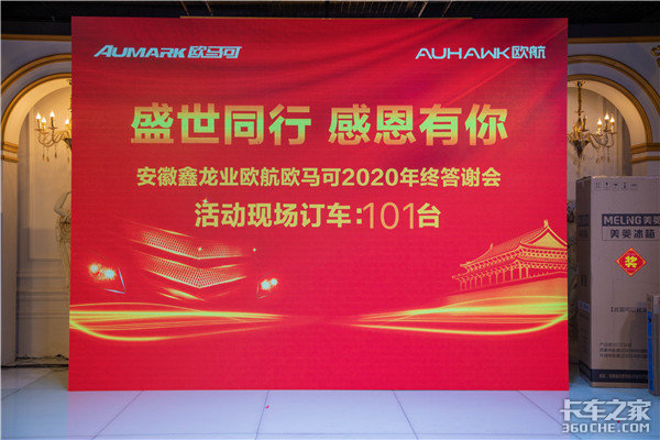 【卡车之家 原创】1月16日,由安徽鑫龙业汽车销售服务有限公司举办的欧航欧马可超级卡车阜阳客户答谢会暨现场签售会在天英玺悦大酒店隆重举行。