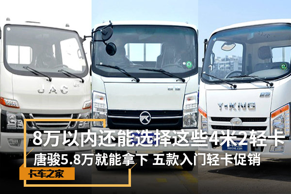 【卡车之家 原创】今年来到了第二季度,《对比选车》栏目在卡车之家行情板块了解到,有不少地区的经销商对轻卡进行降价促销。本期带大家看看8万块以内能买什么样的“入门级”4米2轻卡,盘点的五款车型里最便宜的竟然5.88万就能开走,所以走过路过千万不要错过哦。