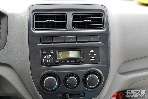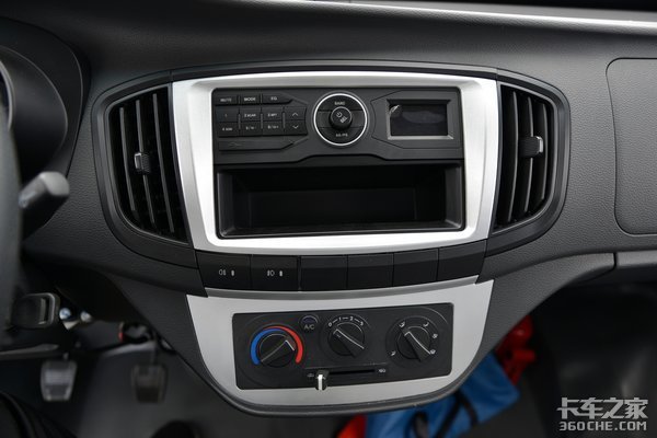 驾驶室整体的设计风格以实用为主,采用灰、黑两色搭配,看上去十分协调,经久耐用不易脏,左侧空调出风口下方还设置了一个空间较大的储物盒,可以把随身的手机、香烟、高速卡等放在里面,非常方便。