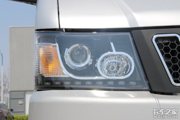 驾驶室采用灰黑色调,线条平滑,一体化程度很高。左侧空调通风口下方是大灯高度调节按键,按键下方设置了单独的储物盒。