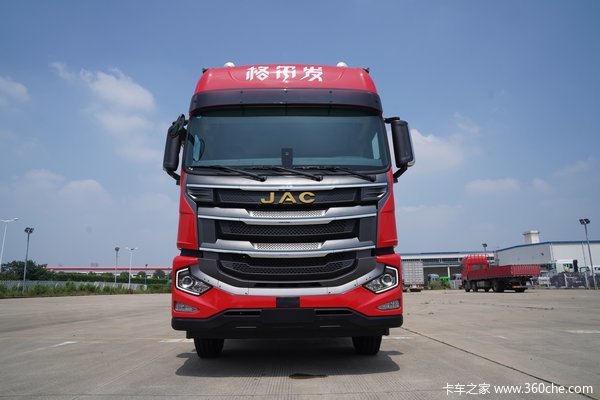 促销车型信息:江淮格尔发A5W重卡 旗舰版 510马力6×4 AMT自动挡牵引车;搭载福田康明斯ISGe5-510发动机,11.8L排量,符合国五排放标准,最大输出功率375kW(510马力),扭矩2300N·m;匹配AMT手自一体12挡变速箱,型号为采埃孚12TX2620TD;后桥速比3.7,采用2/3弹簧片数。
