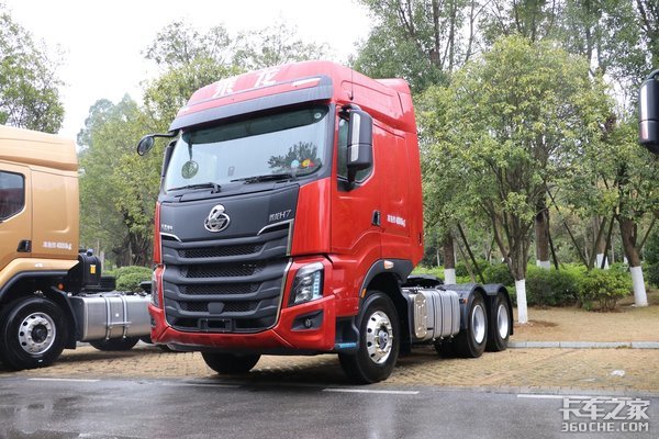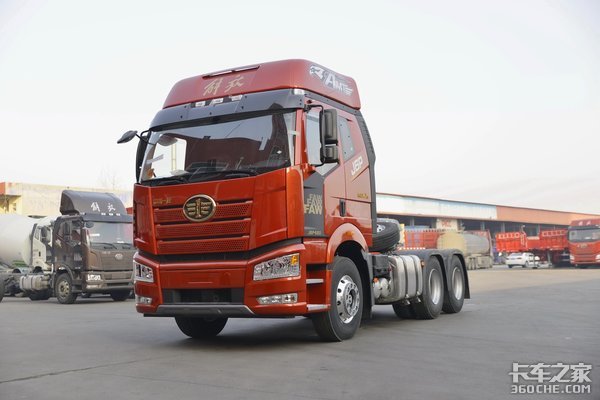 促销车型信息:一汽解放新J6P重卡 领航版2.0版 550马力6×4 AMT自动挡牵引车;搭载解放动力CA6DM3-55E52发动机,12.52L排量,符合国五排放标准,最大输出功率407kW(550马力),扭矩2600N·m;匹配AMT手自一体12挡变速箱,型号为一汽解放CA12TAX230A1,弹簧片数为2/3。