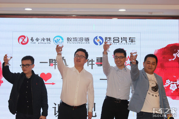 在此激动又兴奋的时刻,一群志同道合的人走在一起,都在为了更好的明天进行奋斗,届时由创业团队代表孟祥斌先生提议:重庆易合冷链&重庆蚁流冷链&重庆胜合汽车共同举杯庆祝伟大的时刻,重庆易合诞生啦,祝愿我们的客户生意越来越好、祝贺我们的冷藏事业蒸蒸日上。