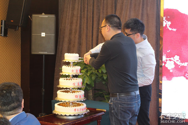 冷链物流,我们来啦,重庆易合公司单独制定的5层专属蛋糕,每一层都标注着重庆易合财源广进、生意兴隆,领导共同举刀切分蛋糕,寓意大家都可以分蛋糕,生意节节高,生意人讲究。