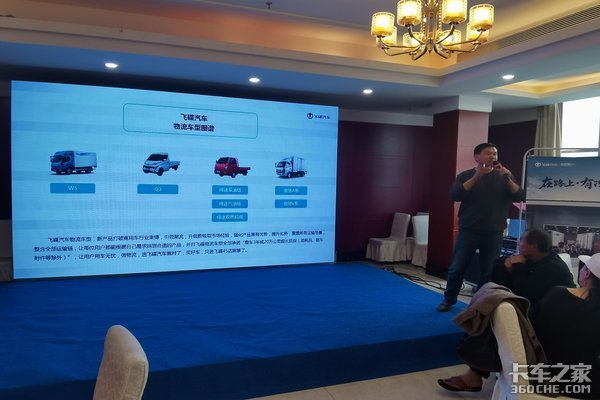 飞碟汽车临沂市场业务经理郑召福先生为到场卡友进行了“物流新势力产品”的详细讲解,让到场卡友充分了解到了飞碟汽车产品的优势,增加了卡友的购买信心。