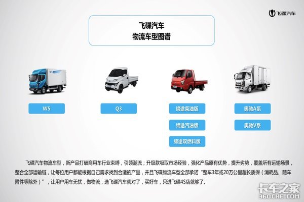飞碟汽车物流车型,新产品打破商用车行业束缚,引领潮流;升级款吸取市场经验,强化产品原有优势,提升劣势,覆盖所有运输场景,整合全部运输链,让每位用户都能根据自己需求找到合适的产品。