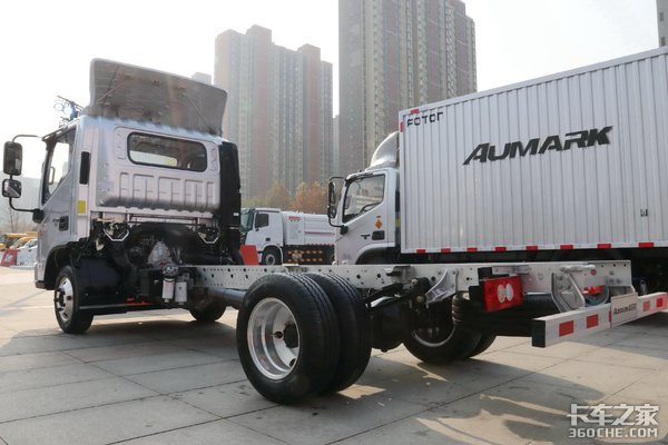 匹配法士特C6J45TB变速箱,档位数为6;底盘为前3后5+3钢板弹簧结构;前桥允许载荷达到1610kg,搭载5T级后桥,允许载荷达到2885kg,速比为4.875,可搭载4180x2200x2150mm厢式货箱。
