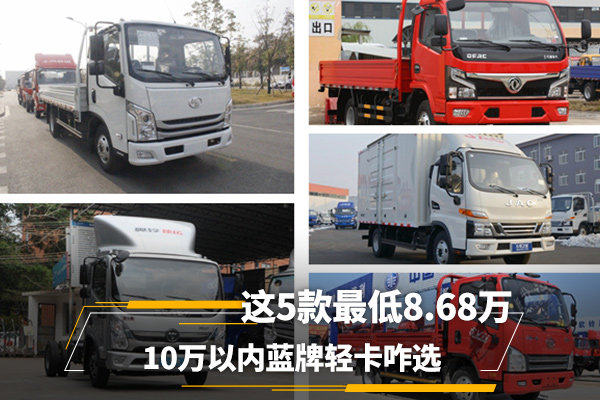 之前小编就也对牵引车《两省两市国五上牌延期 这优惠福利吃吗》和9米8货厢大单桥车型《最高3.8万元优惠! 五款9米6大单桥咋选》进行了盘点,那本期卡车之家找出了五款蓝牌轻卡,其都有着较低的出售价格,具体车型为哪些咱接着往下看!