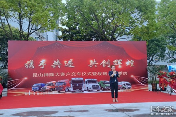 昆山鑫马的娟总和张总合作4年来,对张总高度认可,用8个字来概括:诚信、榜样、谦虚、共赢。此次交车活动在鞭炮声中圆满结束,相信昆山鑫马在东风柳汽乘龙厂家的支持下将一如既往的用优质服务,感动着每一位卡友。昆山鑫马汽车销售服务有限公司是苏州昆太地区东风柳汽乘龙一级经销商,公司占地面积12000平方米,配件库存量500多万元,年销量达一个多亿。昆山鑫马拥有自己的服务站,售后服务是鑫马公司的基石,针对大客户的保养还可以提供上门服务,公司还提供高效低率的金融信贷和公平合理的挂靠业务,欢迎各位朋友到昆山鑫马作客。
