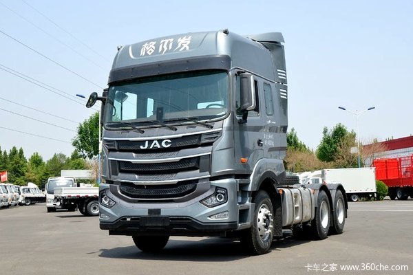江淮格尔发A5WⅢ重卡 460马力 6X4 牵引车(国六)。动力方面,搭载11升玉柴YCK11460-60发动机,最大输出460马力,峰值扭矩2200牛米,符合国六排放,匹配12挡法士特12JSDX220TA-B变速箱,采用440后桥,速比3.7。