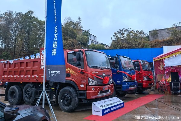 主要是以下几个产品:1、号称地库王的地下室金刚产品,市场占有率达到70%以上;2、14吨的ES3和18吨的ES5。3、重点推荐的全新升级的两轴黄牌福田瑞沃金刚炮悬浮桥产品。对于严格实施治超政策的地区,福田厂不惜花重金打造的一款前二后六的悬浮桥产品,这是一款花两轴车的油耗赚三轴车的钱,凡是两轴车能通过的地方他都能通过,这款车标配玉柴K05-240马力,457后桥,法士特10档,货箱从4.1米-5.2米,轴距从3.7米-4.8米,一键提升三气囊带差速锁,中桥提升离地高度有135毫米,通过性、脱困性极强;并且在活动当天,购车客户可以享受到10000元的优惠,还能享受金融贴息政策和送尿素活动。