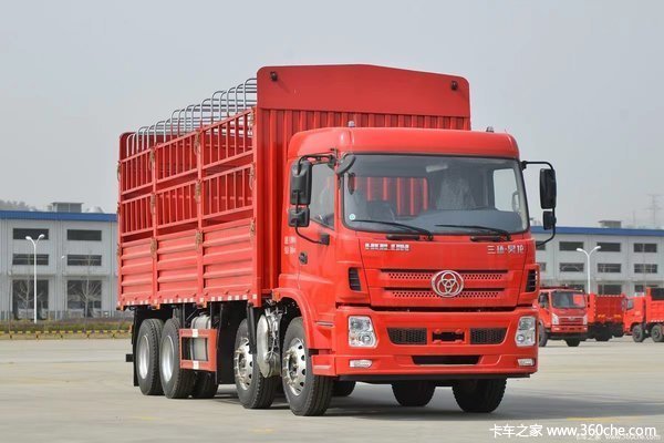 三环十通 昊龙 270马力 8X2 7.2 米仓栅式载货车(国六)(中桥提升)装配T280平顶舒适型驾驶室,动力方面,搭载玉柴YCS06270-60发动机,输出功率为270马力,符合国六排放,匹配法士特 9JS119TA变速箱,档位数为9,采用153 缩短双后桥,速比为5.571,另外,该车还配备前桥:153双前(1860轮距),后桥:153缩短双/5.571;货箱尺寸:7200X2450X800;1000钢丝胎,对该款新车有购买意向的用户欢迎致电经销商。