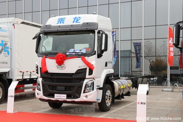 第一款车型是这款乘龙H5燃气大单桥,动力上,该车搭载的是型号为玉柴YCA07260N-60的直列六缸燃气发动机,其排量为6.87升,最大输出功率为191千瓦(260马力),在1200-1700转时输出峰值扭矩1000牛米。传动系统与之匹配的是8档手动变速箱,具体型号为法士特8JS105TA,采用超速档设计,其头档速比为8.08,最高档速比为0.72。