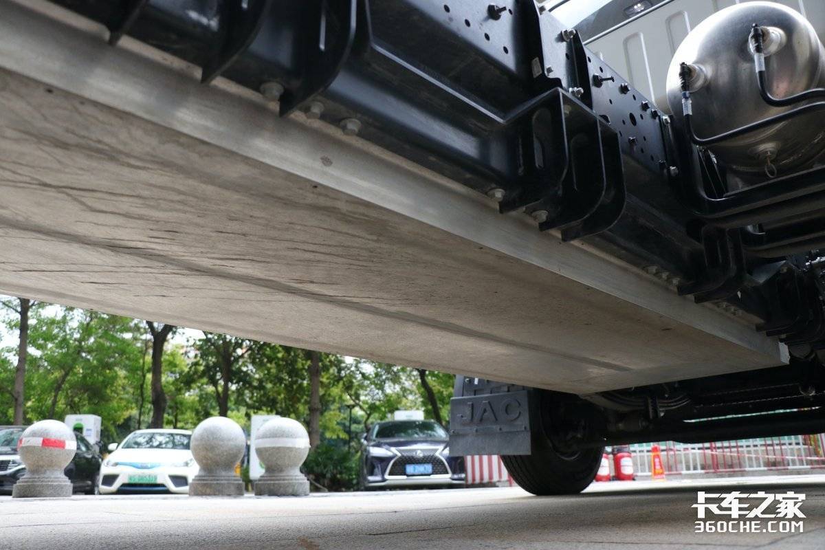 江淮新能源轻卡ES9并没有满足这些,其在底盘悬架上也是下足了功夫。本款车型底盘承载力全面加强,采用180直通梁车架,且车架由宝钢高强度钢一体压铸成型,强度提升63%,再加上车架为850mm大开档设计,即便满载情况下急转弯,车身一样稳定。江淮新能源轻卡ES9以其扎实的底盘,在面对路况复杂的多场景运用一样轻而易举。