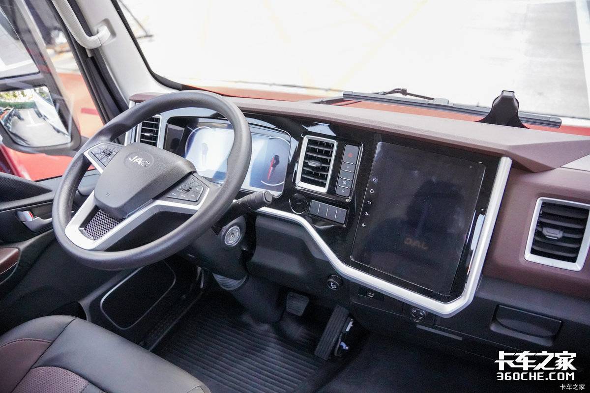 不过,驾驶室才是本款车型的亮点。号称宽体座舱的江淮新能源拥有着2090mm超宽驾驶室,在同级别竞品当中可以说是鹤立鸡群般的存在。取消中岛区域,采用怀档式档把,方便主副驾自由穿行。