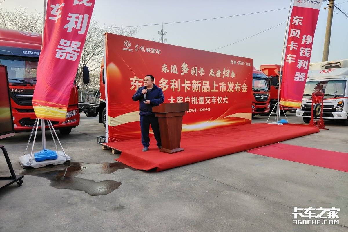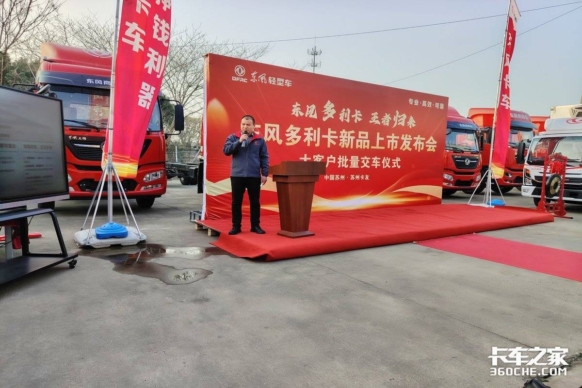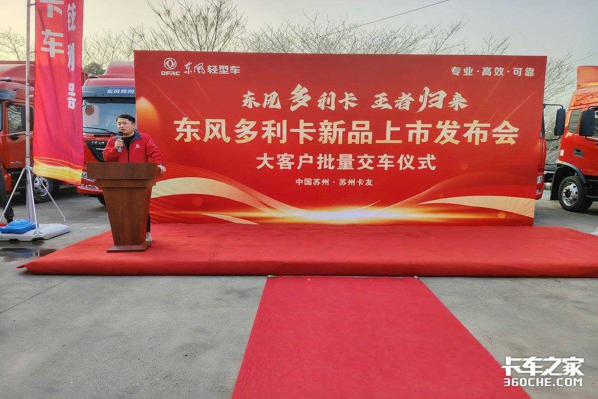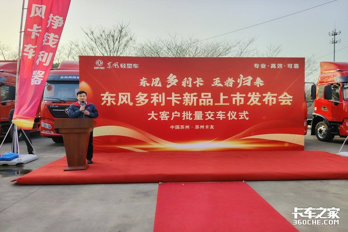 【卡车之家 原创】1 月 1 6日,东风轻型车“东风多利卡 王者归来”新品上市发布会暨大客户批量交车仪式在苏州盛大举行。苏州东神集团、东风股份营销总部等相关领导,以及苏州当地的卡友、大客户代表齐聚一堂,共同见证东风多利卡新品的焕新登场,开启高效创富的全新征程。