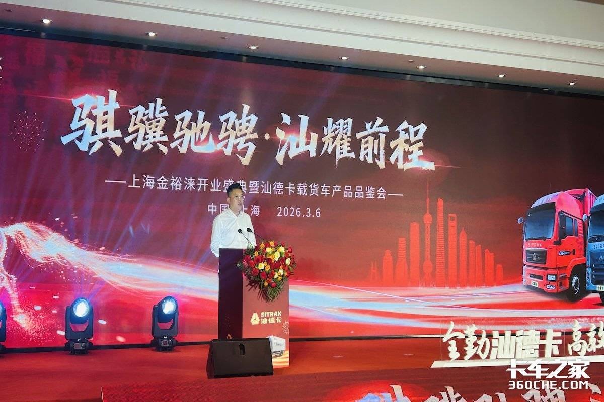 【卡车之家 原创】2026年3月6日,以“骐骥驰骋 汕耀前程”为主题的上海金裕涞开业盛典暨汕德卡载货车产品品鉴会在上海隆重举行。本次活动汇聚厂家领导、行业伙伴、物流客户与媒体嘉宾,共同见证上海金裕涞汽车销售服务有限公司正式启航,沉浸式品鉴汕德卡载货车德系精工与前瞻科技,共启沪上高端物流装备新征程。