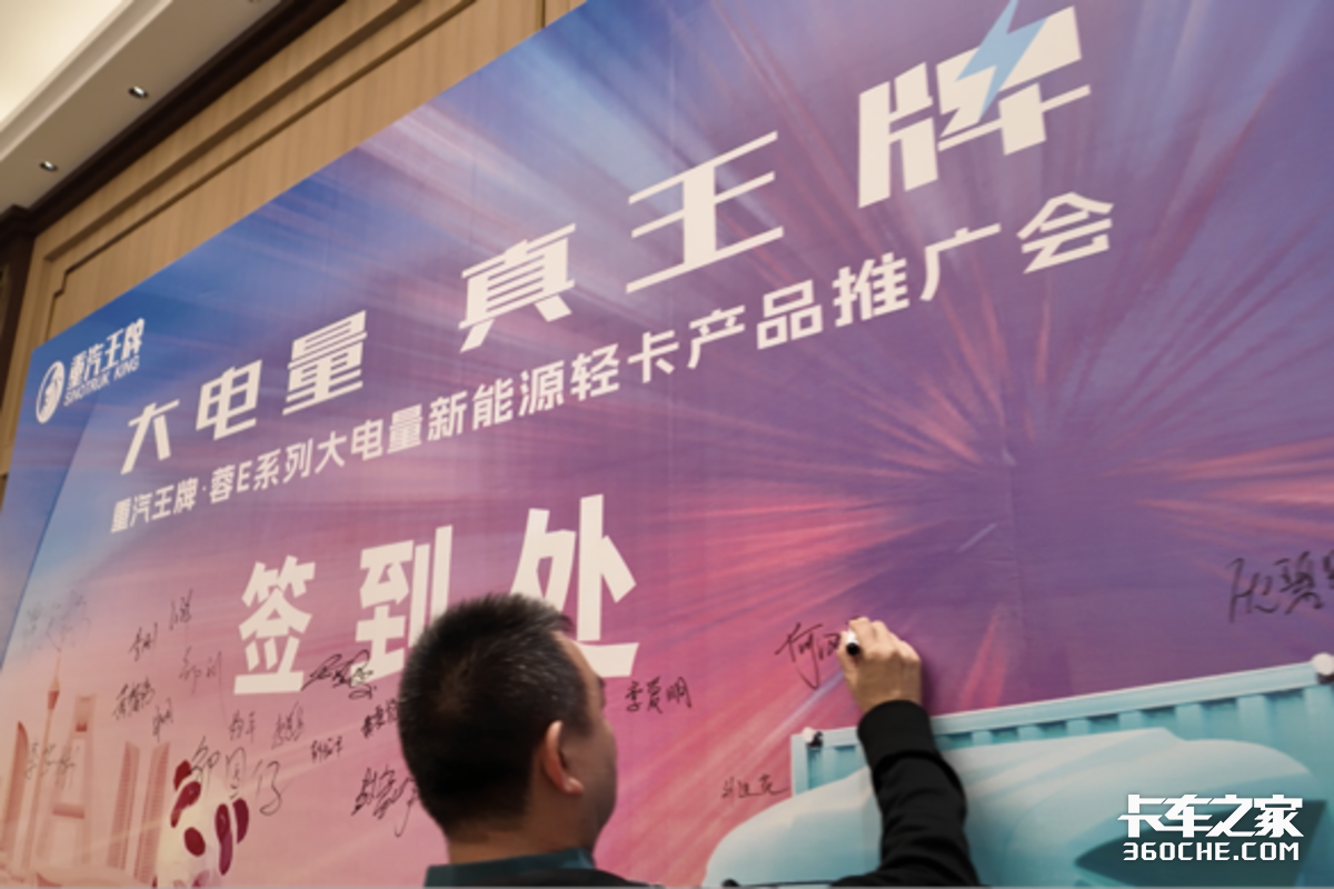 随着嘉宾们陆续完成签到,室内推广会正式拉开帷幕。签到处人头攒动,大家有序签到、交流互动,现场氛围热烈而有序。会上,重汽王牌相关负责人详细解读了品牌在新能源领域的战略布局,深入剖析了蓉E系列大电量新能源轻卡针对城市配送、短途运输等场景的定制化设计理念。从大电量电池带来的超长续航,到轻量化车身实现的高效承载,再到全方位的服务保障体系,每一项优势都让在场嘉宾频频点头。
