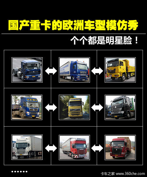 国产重卡山寨车型一览admin2012-02-13注:本文为卡车之家原创,版权归卡车之家所有,任何媒体、网站或个人如转载、引用时,请须注明“来源:卡车之家,并标明作者”,对于侵权行为,卡车之家保留起诉权利。车展 发动机