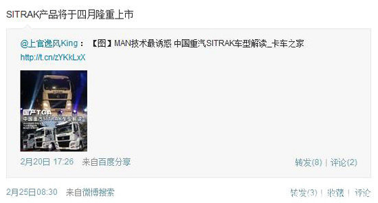 重汽SITRAK车四月上市李昂2013-02-25注:本文为卡车之家原创,版权归卡车之家所有,任何媒体、网站或个人如转载、引用时,请须注明“来源:卡车之家,并标明作者”,对于侵权行为,卡车之家保留起诉权利。高峰论坛