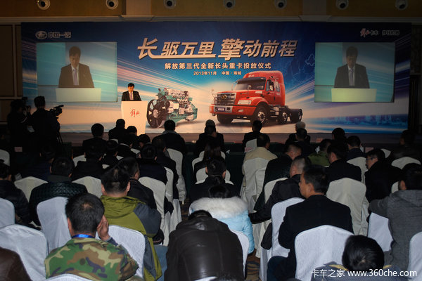 2013年11月17日,由一汽解放柳州特种汽车有限公司研制生产的解放第三代长头重卡在辽宁海城通过一汽解放销售网络正式投放市场,首批6名用户兴高采烈地接过厂商的金钥匙,全国首批销售区域的解放商代处及代理商代表和海城当地的用户代表见证了新车投放的喜庆时刻。