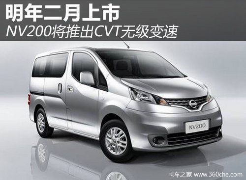NV200是一款基于日产B平台延伸出来的MPV车型,今年3月间,2013款NV200上市,其官方指导价为10.58-12.88万元。不过缺少自动挡车型的组合在一定程度上制约了该车的销量成长。而即将推出的自动挡车型将很好的弥补之前产品上的一些劣势,新车将换装全新的CVT无级变速器,而发动机部分则沿用现款配置。