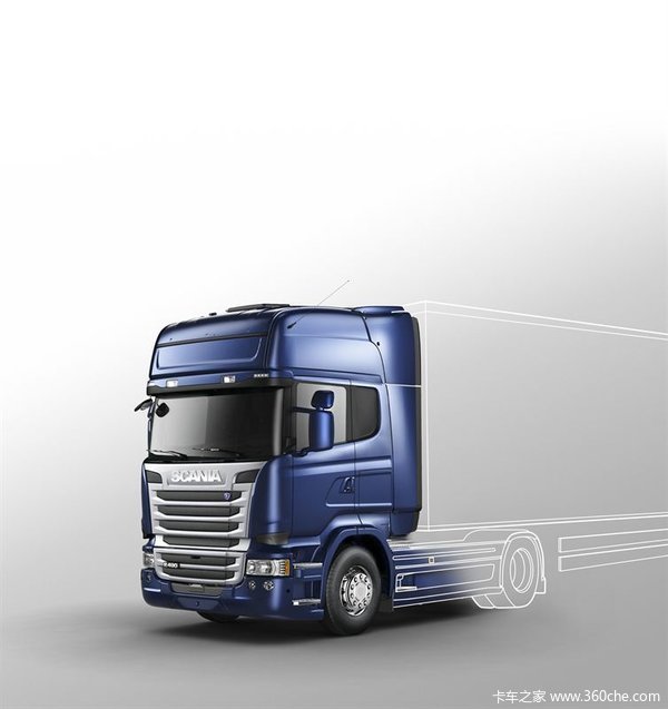 5、斯堪尼亚R450 Streamline 4x2牵引车,采用R系列Topline驾驶室,全车采用空气悬挂。13升直6柴油发动机,最大输出功率为450马力,最大输出扭矩高大2350N.m,仅用SCR系统就可达到欧六排放标准。发动机匹配斯堪尼亚Opticruise前12后2档自动变速箱,带超速档,并匹配液力缓速器。