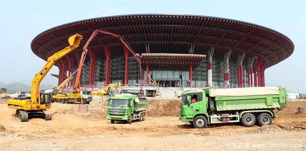 在为APEC会馆建设提供的绿色高效解决方案中,福田汽车及福田戴姆勒汽车系列高品质与环保型产品全面参与。如欧曼新型渣土车、雷沃挖掘机承担建设工地开凿阶段的土方挖掘、建筑垃圾转运工作,雷萨搅拌车与泵车为场馆工程建设提供混凝土运输与浇筑,雷萨起重机进行现场工程吊装服务等,同时,符合欧曼、欧马可京Ⅳ排放标准的LNG系列洒水车等环卫用车保障场馆的日常运营与绿化保养。
