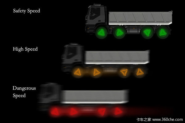 然而,该作更有趣的是,这款轮胎灯会根据车速不同会发出不同颜色的光。当卡车以较低的安全速度行驶的时候,它将是绿色;当卡车速度较快的时候它会变成黄色;如果卡车以非常快的危险速度行驶的时候它会变成红色。(文/ 于伟峻)