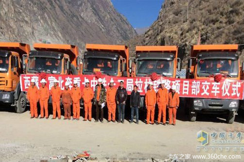 2015年2月7日,“西藏天富北奔重卡中铁十二局拉林铁路项目部交车仪式”在中铁十二局施工项目部举行,10台北奔2530K型自卸车如期交到用户手中,西藏天富几个月的辛劳得到回报。