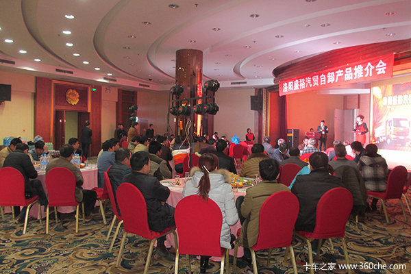 2015年3月11日,洛阳盛裕汽贸6x4自卸产品推介团购会于洛阳大酒店隆重举行,整场活动在一片欢乐祥和,欢乐融融的气氛下进行。现场抽奖、购车环节让客户们心动不已。每位到场用户都获赠价值255元恒源祥抱枕被一件。