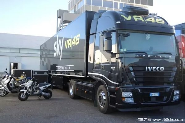 在上个赛季,依维柯就是Sky VR46 车队的官方供应商,并为车队提供了两辆500马力的黑色Stralis运输车。
