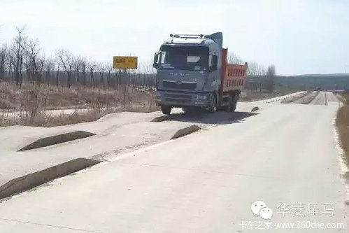到了试验场之后,华菱常驻定远的整车试验部何宜江部长开车领我参观了试验场。在这方圆10平方公里的丘陵地带,铺设了各种路面,婉蜒于山丘之间,每条路的起端,都竖了一个路牌——自然山路、蛇形路、砂石路、波形路、水路、搓板路、大小卵石路、鱼鳞坑路、涉水路、泥泞路、陡坡急弯……不下几十种之多。来此试验的各种车辆,都在小心翼翼地颠簸在各条路上,如果是卡车,还得按标载装上水泥配重块,满负荷行驶。
