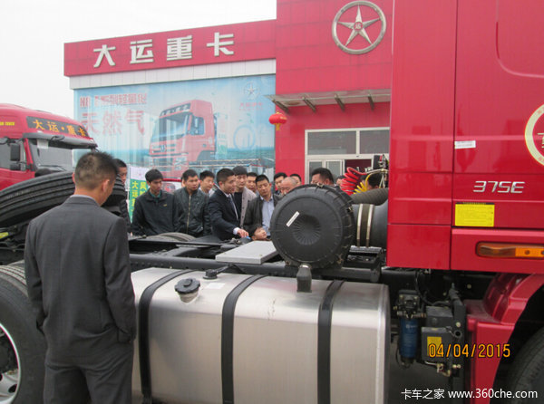 首先,参加推介会的人员在大运重卡业务员及临沂4S店销售员的带领下,围绕大运重卡国四展车,对其产品卖点、技术参数等进行了详细了解。