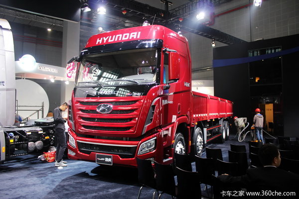 【卡车之家 原创】四川现代作为国内比较年轻的商用车生产企业,其技术储备实力及生产能力却是跨入国内商用车企业先锋行列,其产品结构覆盖了轻、重卡两大体系。在今天上海车展的现场,四川现代展馆展出了一台410马力的创虎载货车。