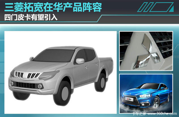 目前三菱汽车在华销售渠道包括广汽三菱、东南三菱以及三菱(中国),产品阵容覆盖了轿车、跑车、SUV以及MPV,为了在中国市场获得更大的市场份额,三菱汽车有意拓宽在华产品阵容。日前,网通社从国家知识产权局获取了三菱全新四门皮卡的专利申报图。这款车为三菱旗下皮卡车型L200,该车第五代全新车型已在年初举办的日内瓦车展中亮相,并有望引入国内以丰富三菱在华产品阵容。
