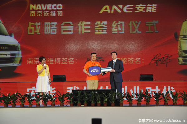 合作共赢,助力发展。2015年6月28日,南京依维柯与上海安能集团供应链管理有限公司在上海世博会议中心签订战略合作协议。南京依维柯与安能集团的此次强强联合,受到了双方高层领导的高度重视,南京依维柯销售公司市场部总监马昶东受邀出席了此次安能创业节——五周年庆典暨第四届全国网络大会,双方共同签署了深化战略合作的协议。同时,南京依维柯借此机会,向安能集团交付首批专用物流用车。