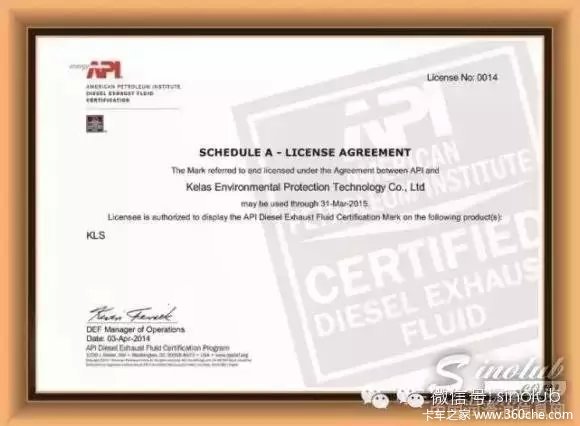 2010年,可兰素在国内率先通过美国石油学会API的DEF认证,当年年底,可兰素又获得了德国工业协会VDA的AdBlue认证,全面符合了VDA6.3体系的相关要求。这两大国际权威认证也是目前国际上对于车用尿素产品的最高认可。