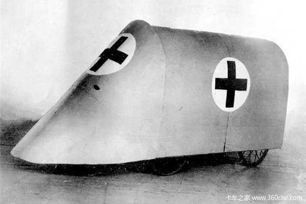 上图是一种实验性质的救护车,设计初衷主要用来在战壕中拯救和运送伤员,时间大约在1915年。救护车从战地救护发展到民用救护始于1869年,当时美国纽约市的贝尔维医院首次配备和使用了救护车,当然,这时候使用的仍然是马车救护。