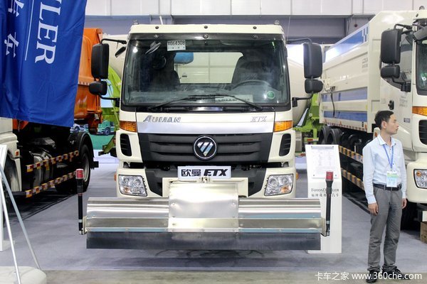 本次展会上,福田的展车可以分为环卫用车和建筑用车。环卫用车包括洗扫车和车厢可卸式垃圾车;建筑用车包括智能渣土车和混凝土搅拌车。它们无一例外都采用了福田戴姆勒的底盘。
