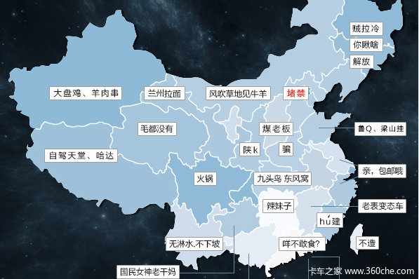 【卡车之家 原创】咱们卡车司机走南闯北,视野开阔,说起见识,那可真是谁也比不上。俗话说“一方水土养一方人”,中国疆土辽阔,地大物博,每个地方自有其独特的风土人情、文化特色。那咱们卡车司机眼中的中国地图到底是什么样子的呢?