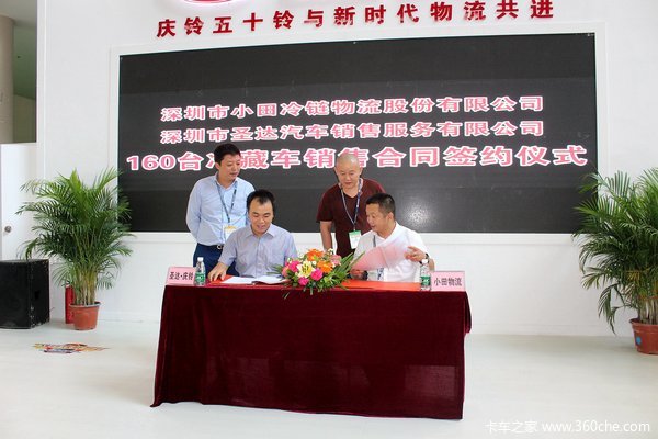 【卡车之家 原创】2015年10月16日,在第十届中国(深圳)国际物流与交通运输博览会的庆铃展台现场,深圳市小田冷链物流股份有限公司与深圳圣达汽车销售有限公司正式签署了160台庆铃冷藏车销售合同,加上前期已经交付的8台样车,此次合作深圳圣达将会向小田冷链共计交付168台冷藏车。