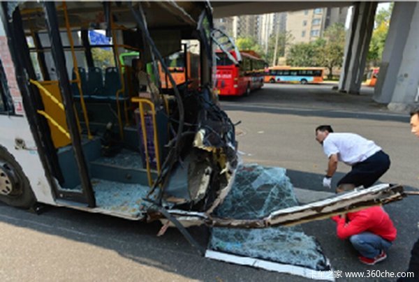 “福州北路靠近伊春路路口发生了一起四车相撞的交通事故,一辆公交车的前脸都被撞烂了。”市民刘先生拨打早报热线82888000报料。记者闻讯赶到现场看到,一辆503路公交车停在路口北侧的一处公交车站上,公交车前挡风玻璃完全破碎,右侧A柱被撞断,车前脸被“撕裂”,一扇车前门被撞进驾驶室内,右侧车门后方多扇玻璃破碎,车内座位和地面上满是玻璃碎片和其他零部件。据驾驶员介绍,幸亏当时上班高峰期已过,车上只有一名乘客而且坐在比较靠后的位置,才没有受伤。