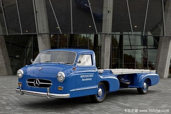 这款1954年生产的奔驰F1运输专用车,采用超大的翼子板和奔驰极具特色的前脸设计。其实它就是一辆搬运车,相比现在F1运输车来说,我觉得它更好看,更有爱。