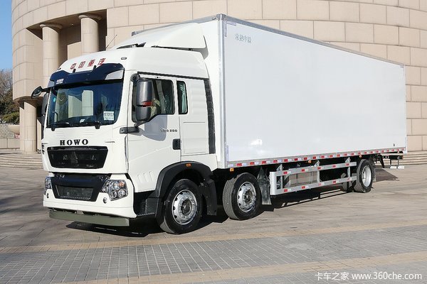 这款豪沃T5G厢式载货车采用曼驾驶室,白色涂装,整体外观看起来更加硬朗大方。