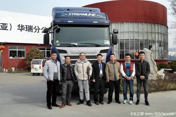 【卡车之家 原创】2016年2月19日,青岛裕安汽车销售服务有限公司在临沂市兰陵县兰陵华瑞汽车贸易有限公司院内举办了山东首台斯堪尼亚G480马力6*2牵引车交付仪式。来自青岛裕安汽车销售服务有限公司经理张伟旗,兰陵华瑞汽车贸易有限公司经理田超及新老用户朋友20余位嘉宾出席了此次活动。