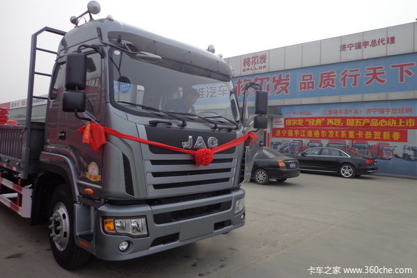 【卡车之家 原创】2016年3月8日,济宁强宇汽车销售有限公司在位于济宁市西外环105国道金宇汽配城院内,举行江淮格尔发A5系中卡载货车交车仪式。各位车主客户参加活动。