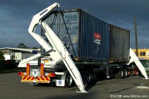 【卡车之家 原创】在转运集装箱时,一般都需要有大型吊机将集装箱一个个的吊起进行装卸,再由牵引车进行运输,但这样将会有较长的等待时间。如果每一辆卡车都可以自己完成集装箱的装卸,将会大大提升运输效率。