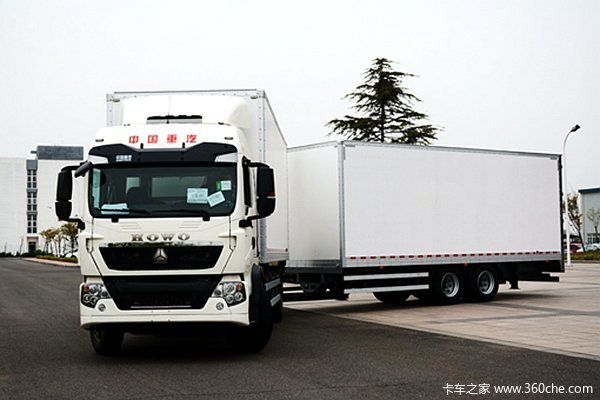 【卡车之家 原创】近日,中国重汽宣布旗下青岛重工已经成功开发出中置轴汽车列车。此车目前在国内是首创,它是将可卸车厢货车与中置轴挂车组成汽车列车,可提高物流运输效率40%以上。