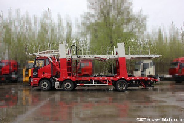 这款解放中置轴轿运车是基于J6M 6x2底盘改装而成的,中置轴轿运车是由主车和拖车部分组成,图片展示的只是主车部分。